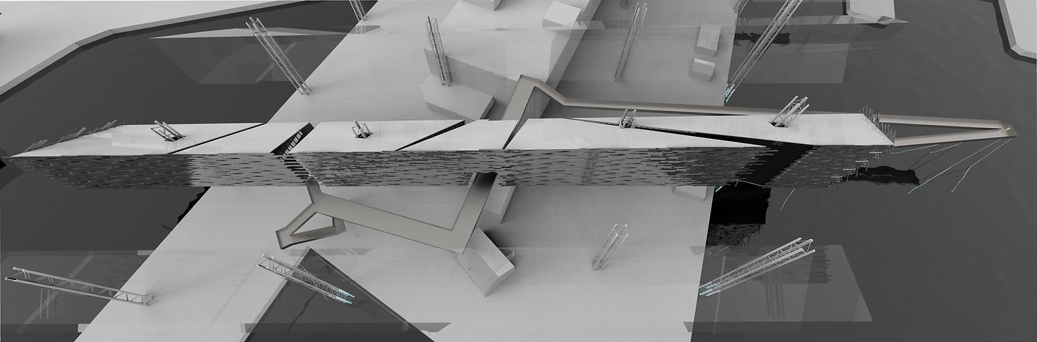 The Brooklyn Navy Yard was a location of machine building that would explore the Terra Incognita of the world. In diagraming how the BNY functioned as a place of outward direction from the dry docks a CrossGrain was informed for a functional future of the spaces. Elevating of the crossgrain would allow for the sea level rise to consume the past that was the old BNY, but for it to remain its new human function above and into Terra Incognita.